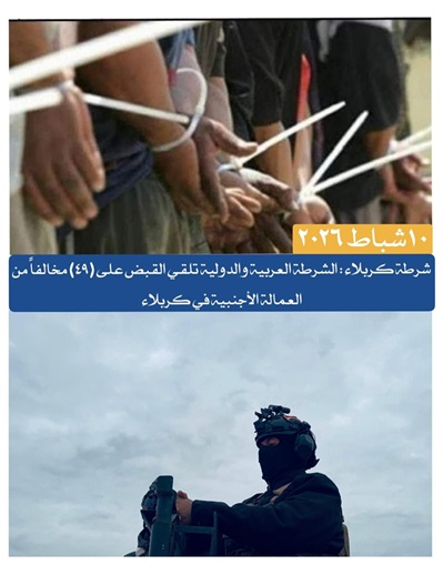 القت الشرطة العربية والدولية التابعة لقيادة شرطة محافظة كربلاء المقدسة القبض على (49) مخالفًا من العمالة الاجنبية في كربلاء.