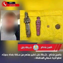 شرطة بابل تطيح بمتهم من بغداد بحوزته قطع أثرية ثمينة بكمين استخباري محكم