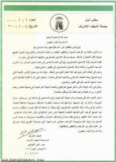 البيان الاستنكاري لمكتب إمام جمعة النجف الأشرف عن تفجير منارتي سامراء