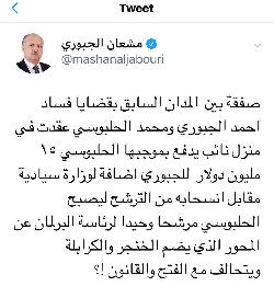 مشعان الجبوري: الحلبوسي أشترى رئاسة البرلمان بـ 15 مليون دولار