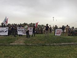 العشرات من منتسبي الحشد الشعبي وعوائلهم يتظاهرون امام المنطقة الخضراء وسط بغداد