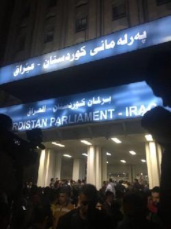 العشرات يقتحمون مبنى برلمان اقليم كردستان وسماع اصوات اطلاق نار داخل المجلس ( موسع )