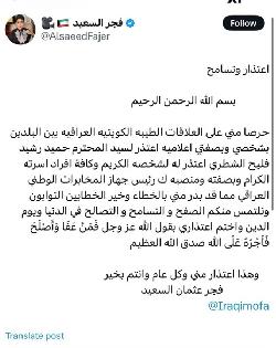 الكويتية فجر السعيد تعتذر لرئيس جهاز المخابرات الوطني العراقي
