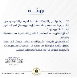 السوداني يهنئ بحلول رمضان: سنواصل مهمتنا لإنجاز البرنامج الحكومي