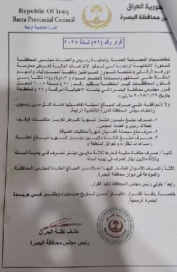 مجلس البصرة يخصص 5 ملايين شهريًا لرئيسه واعضائه "للبنزين والضيافة ومساعدة الفقراء"!