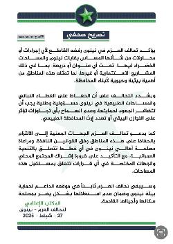 تحالف العزم يؤكد رفضه تحويل غابات نينوى الى الاستثمار