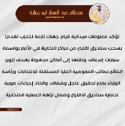 سطام أبو ريشة: تقدم استخدمت سيارات إسعاف لنقل صناديق اقتراع إلى المجهول في الأنبار