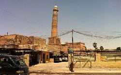 صورة للجامع النوري والمنارة الحدباء بعد تفجيرهما