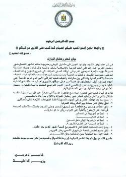 الداخلية تصدر تعليمات بمناسبة شهر رمضان