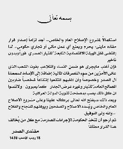 الصدر يغلق الهيئة الاقتصادية للتيار لفسادها وتلاعبها بقوت الشعب