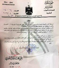 فتح باب الترشيح لشغل منصبي رئيس ونائب هيئة استثمار ذي قار