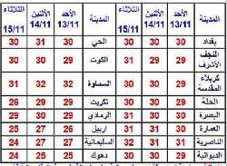 تقرير عن حالة الطقس في العراق خلال الزيارة الأربعينية