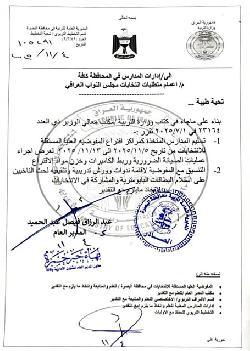 تربية البصرة تصدر توجيهات بشأن تسلم مدارس المراكز الانتخابية