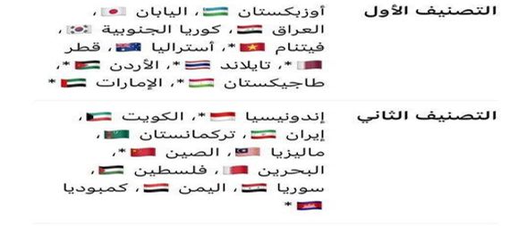إندونيسيا، الكويت، إيران، تركمانستان، ماليزيا، الصين، البحرين، فلسطين، سوريا، اليمن، كمبوديا.