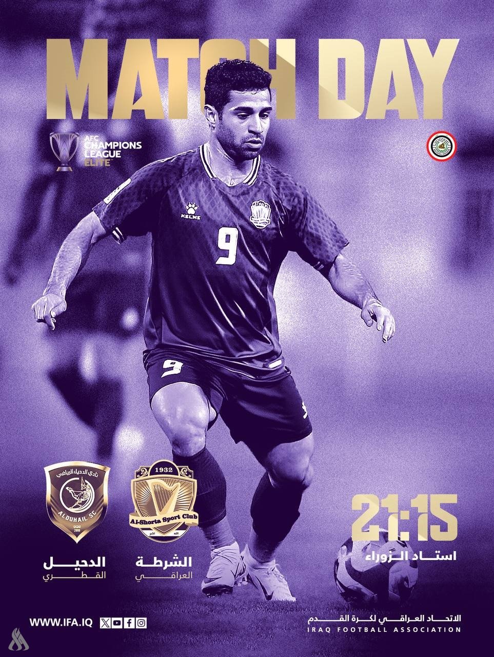 يحتضن ملعب الزوراء في قلب العاصمة بغداد، عند الساعة التاسعة وخمس عشرة دقيقة من مساء اليوم الاثنين، مواجهة مهمة، حين يستقبل فريق الشرطة ضيفه الدحيل القطري في الجولة الثامنة والأخيرة من مرحلة المجموعات لدوري أبطال آسيا للنخبة، إذ يحمل اللقاء طابع التحدي ورد الاعتبار، إذ يتطلع فريق الشرطة إلى ظهورٍ مشرّف يليق باسمه وتاريخه، بعدما لازمته عقدة النتائج في الجولات الماضية، فاكتفى بتعادلين من دون أن ينجح في تذوق طعم الانتصار.