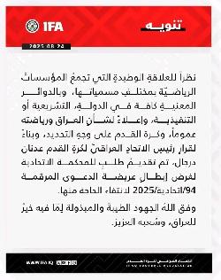 اتحاد الكرة يقدم طلبا للمحكمة الاتحادية لابطال عريضة دعوى قضائية