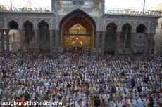 الجموع المؤمنة تؤدي مراسيم صلاة العيد في الصحن الحسيني الشريف وخطيبها ينتقد رداءة الخدمات
