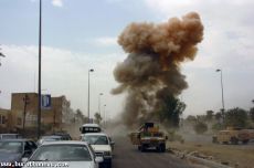 جانب من الدمار الذي خلفه الانفجار عند مدخل نقابة الصحافيين العراقيين ...