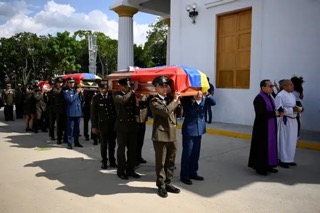 كما نشرت القوات الفنزويلية الأربعاء مقاطع فيديو لجنازات الجنود القتلى أظهرت عشرات الأشخاص يذرفون الدموع ونعوشا مغطاة بالأعلام الفنزويلية، وخطابات تشيد بـ "شجاعة وبسالة وشرف وولاء" الجنود القتلى.