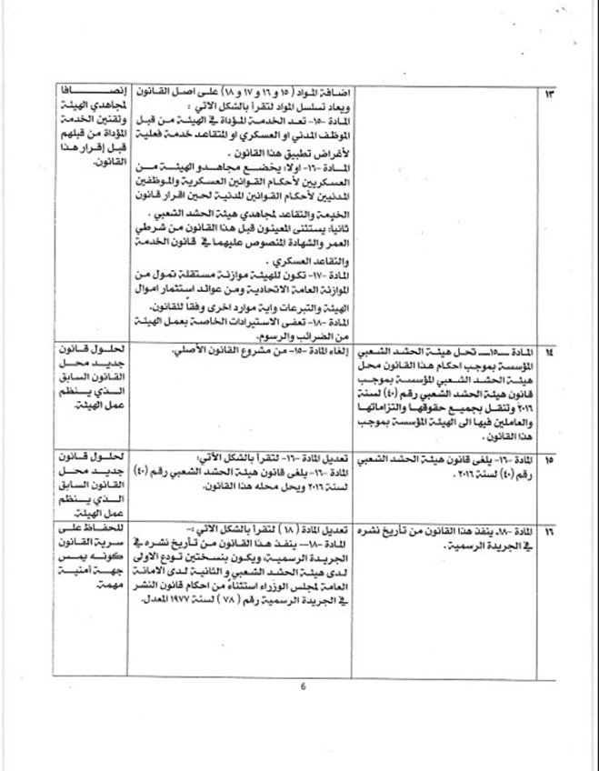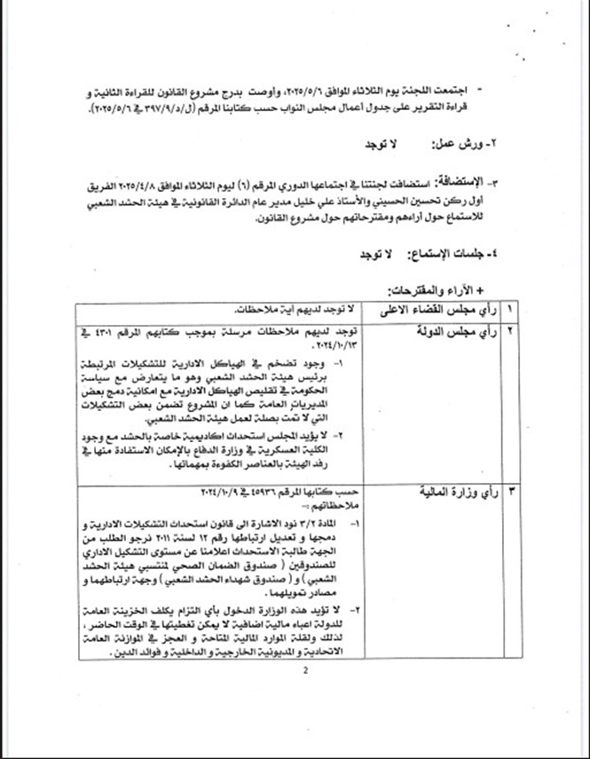 تنشر وكالة انباء براثا  اليوم الأربعاء، (16 تموز 2025)، نص مشروع قانون هيئة الحشد الشعبي.